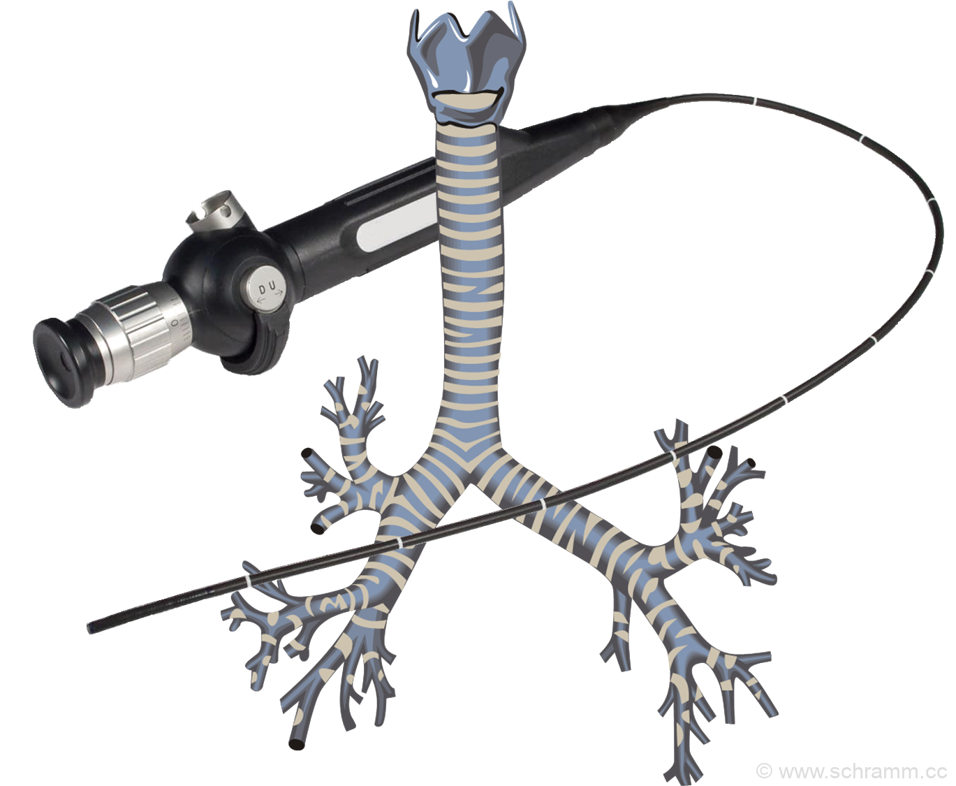 Die Bronchoskopie ist eine endoskopische Methode bei der ein Endoskop über Mund oder Nase eingeführt und durch die Trachea in die Bronchien vorgeschoben wird.