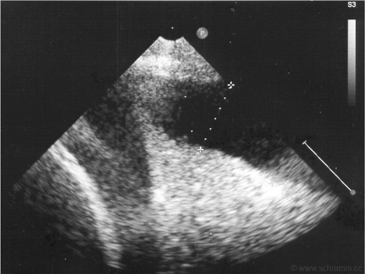 Die Ursache könnte ein Transsudat als Folge einer Herzinsuffizienz sein.