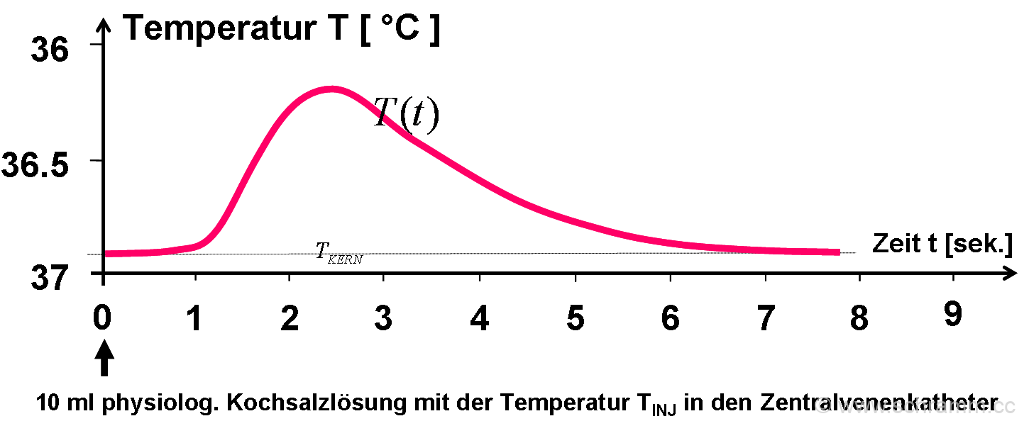 Nachdem 10ml einer kalten physiologischen Kochsalzlösung in den Zentralvenenraum injiziert wurde, wurde über einen liegenden Pulmonalarterienkatheter folgende Kurve angezeigt, wozu dient diese Kurve?