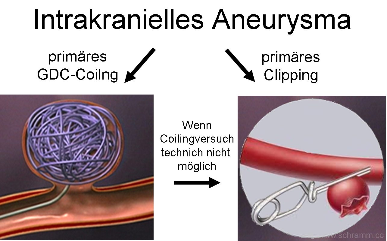 War die Ursache ein Aneurysma, dann wird dieses mittels Clipping (über eine Trepanation) oder Coiling (endovasculär) so rasch wie möglich verschlossen und damit eine Rezidivblutung verhindert.